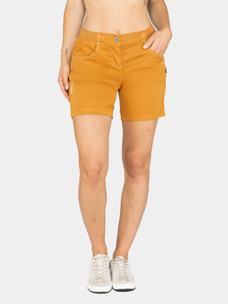 Die wohl robusteste Damenhose im Chillaz Line-Up Jessy gibt es auch als Klettershort! Bewegungsfreiheit liefern das stretchige Material, der lockere Schnitt und der eingesetzte Zwickel. Der elastische Bund mit Kordel sorgt für einen guten Sitz. Wie üblich fesch für den Alltag, aber diese Chillaz Short fühlt sich ganz klar an der Kletterwand zuhause.